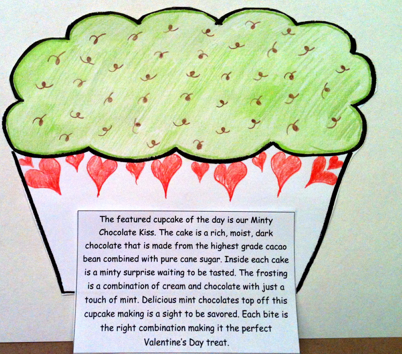 For Valentine's Day I decided to have a Cupcake Contest. Students will create their ultimate cupcake and write a descriptive paragraph using a cupcake organizer. They will then draw their cupcake and include their description. Students have the opportunity to vote on the one they would like to try and the winners will get a special treat!
